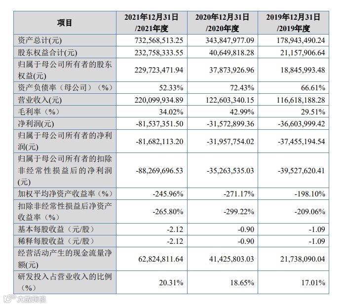 2020年至2022年,公司营业收入分别为1.23亿元、2.20亿元、3.13亿元;净利润分别为-3157.29万元、-8153.74万元、-1.12亿元。