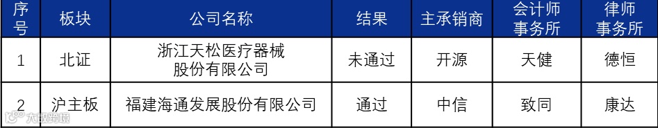1月28日-2月3日,发审委首发上会2家,通过1家,未通过1家。