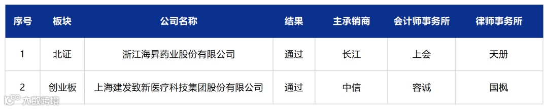 上市委审议结果:通过