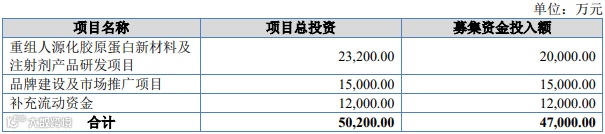 此次IPO拟募集4.7亿元,用于重组人源化胶原蛋白新材料及注射剂产品研发项目、品牌建设及市场推广项目、补充流动资金。