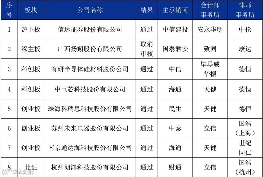 2022年6月27日-7月1日,发审委首发上会8家,通过7家,取消审核1家。