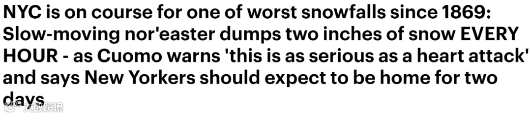 此次暴风雪期间,能见度将很差,大量道路几乎无法通行,纽约市及其周边交通大幅停摆。