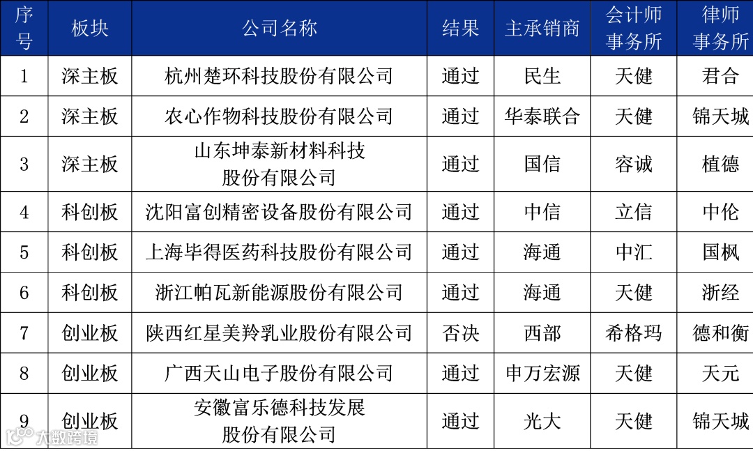 5月5日-5月7日,发审委首发上会9家,通过8家,否决1家。