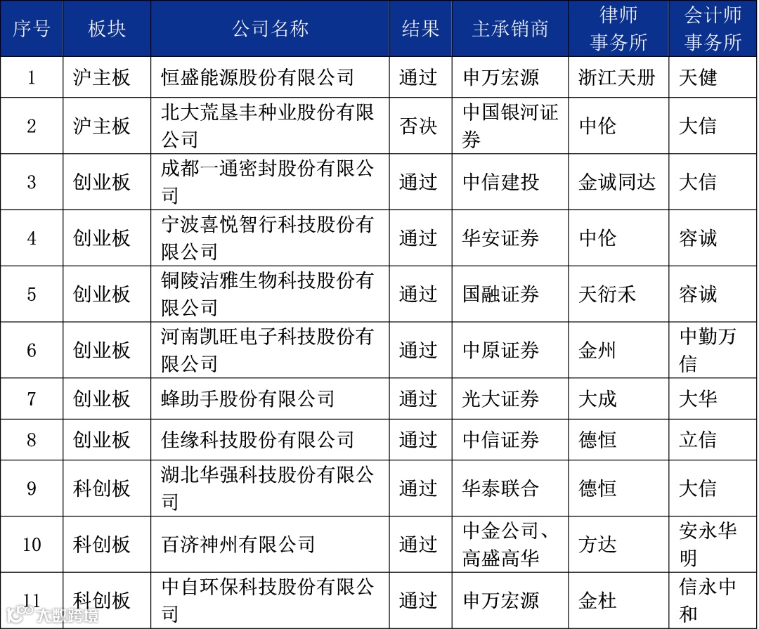 2021年6月28日-7月2日,发审委首发上会11家,通过10家,否决1家。