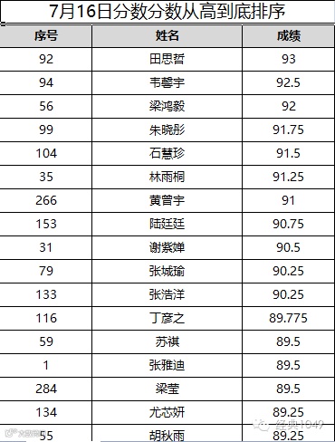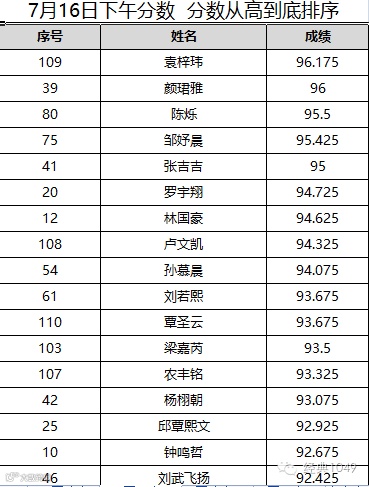 7月16日的分数公布