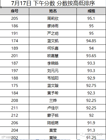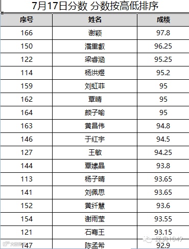 7月17日的分数公布