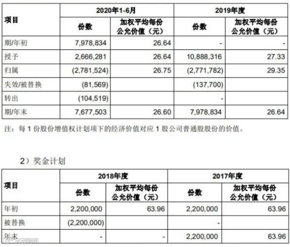 报告期内,根据股份增值权及奖金计划已授予而尚未归属的股份增值权及奖金计划数量变动及相关加权平均公允价值如下: