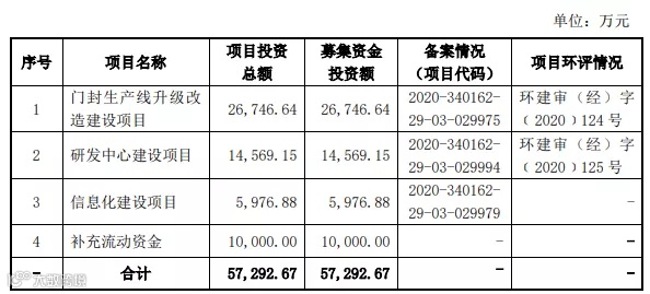 此次IPO拟募资5.73亿元,用于门封生产线升级改造建设项目、研发中心建设项目、信息化建设项目及补充流动资金。