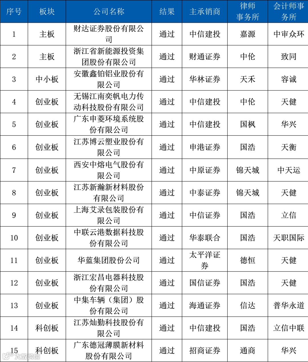2020年12月21日-12月25日,发审委首发上会15家,通过15家。