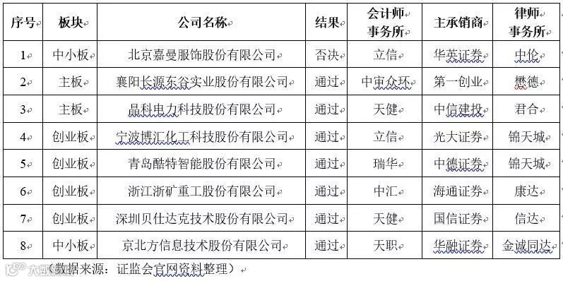 2020年1月6日-1月12日,发审委首发上会8家,通过7家,否决1家。