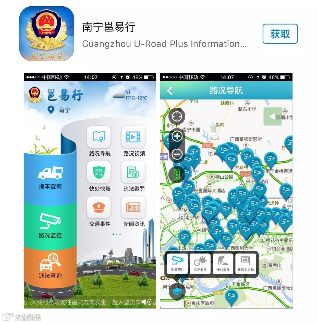 “南宁邕易行”APP拟推出10大功能,主要包括:“路况导航”、“路况监控”、“诱导板”、“交通事件”、“我要报料”、“拖车查询”、“违章查询”、“路况简图”、“车驾管便民查询”等。