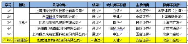2017年8月28日—9月1日,发审委首发上会6家,通过5家,未通过1家。