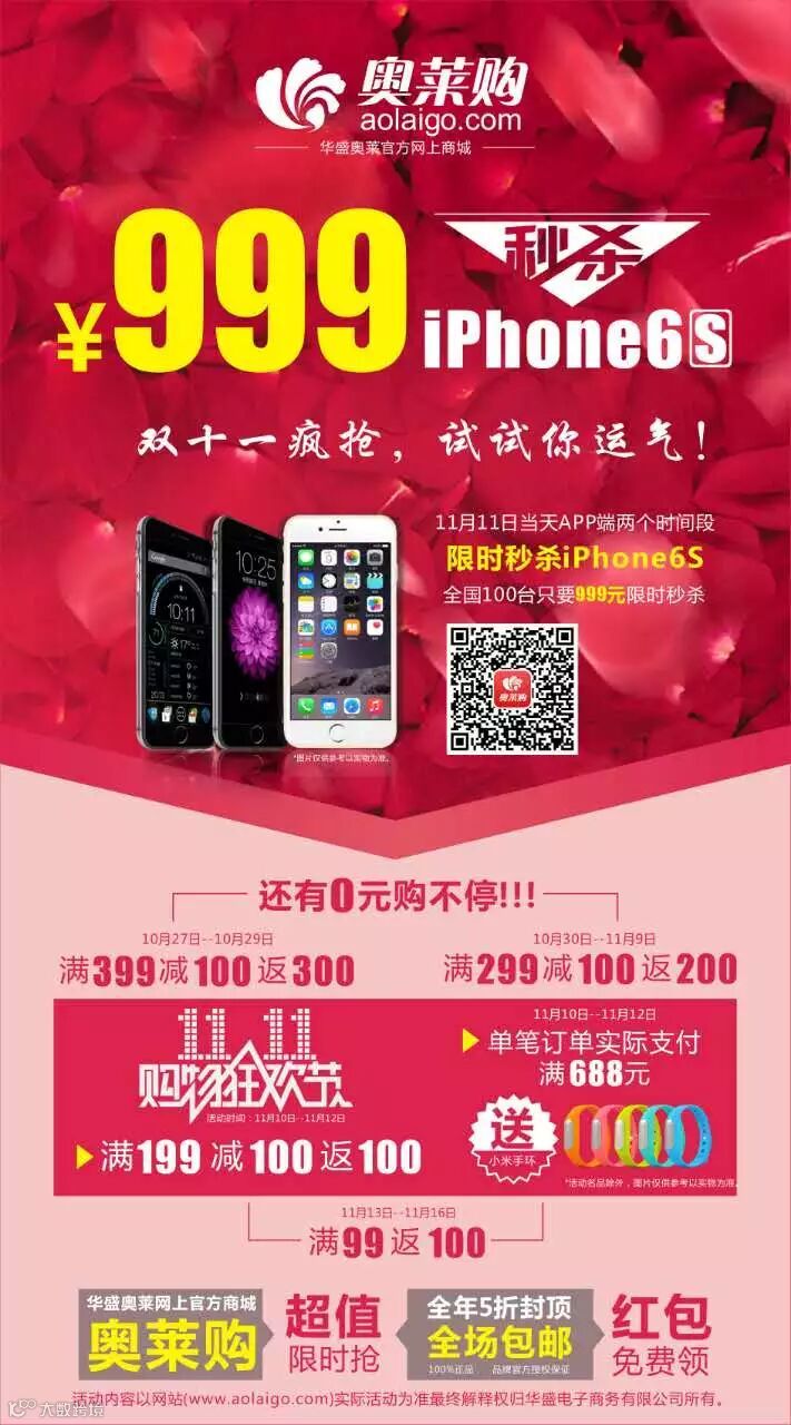 线上奥莱购带你 0元购 ¥999秒iPhone6S