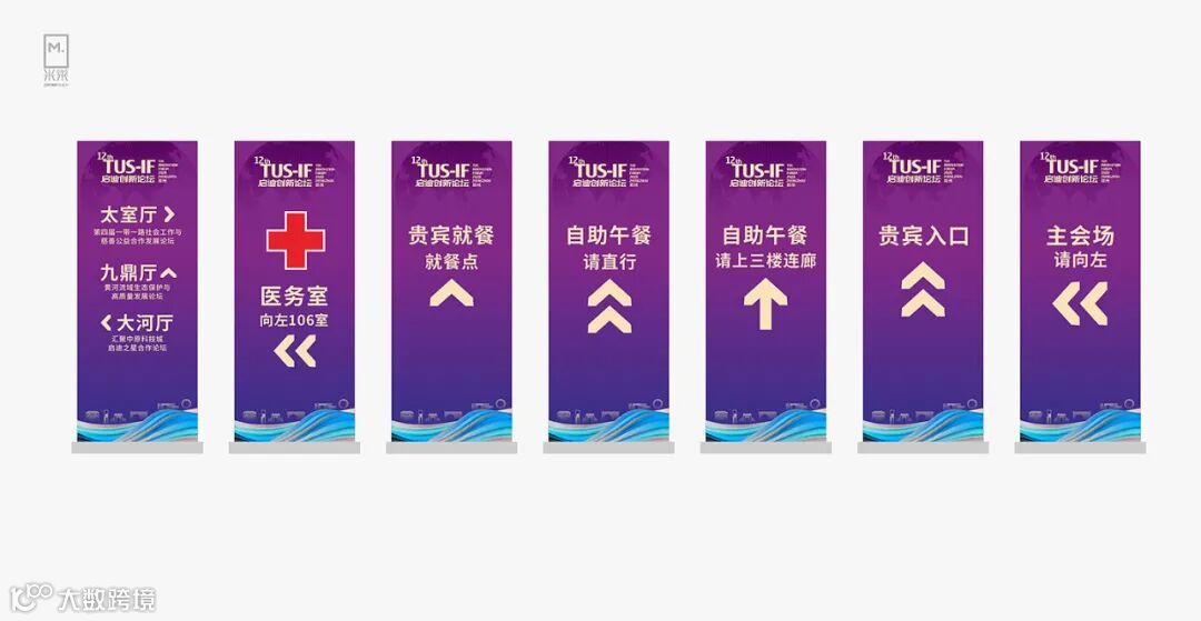 整合所有的物料输出,论坛手册、证件牌、指示牌、车贴等等,与主面结合,形成统一的、易于识别的视觉符号,不断加深来访者对本届论坛的印象,形成品牌辨识度。