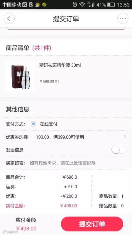 成功下单且实付金额满688元