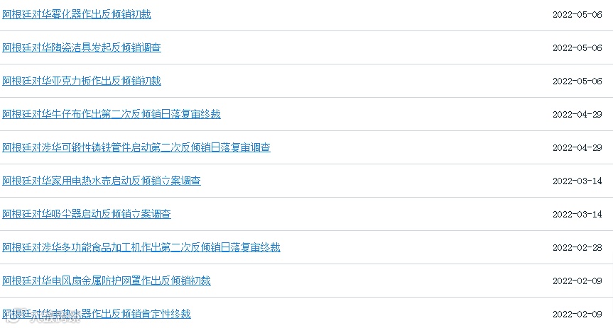 另一方面,今年开始,阿根廷对我国出口产品发起了多项反倾销调查。
