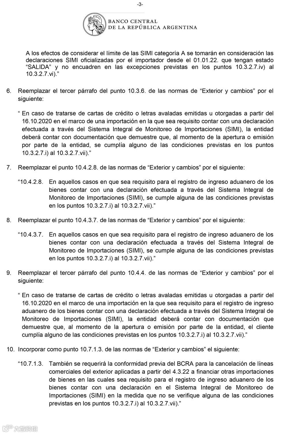 阿根廷中央银行(BCRA)为控管因进口持续增长而导致的外汇损失,于3月3日发布A7466号公告,将介入综合进口监控系统(SIMI)申请流程,自3月4日起至今年年底采取新外汇措施。