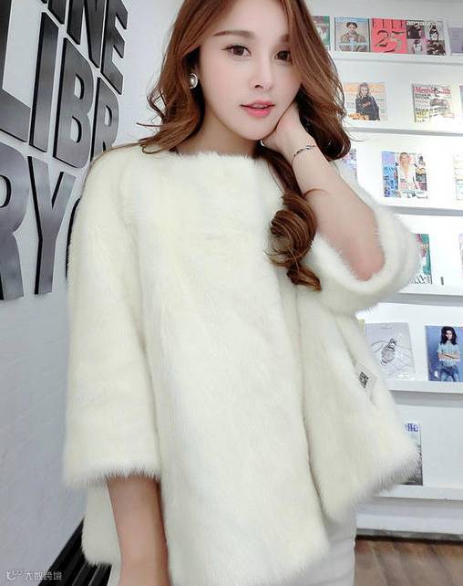 韩版修身兔毛皮草 短款长袖纯色保暖上衣90元
