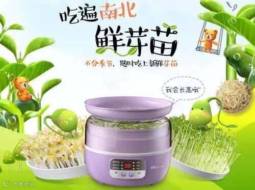 有这样一款神器——豆芽机,只需短短三天,就能不分季节吃到新鲜豆芽。操作极为方便,只要把小种子浸泡在容器内,等着微电脑控制吃上新鲜豆芽吧~