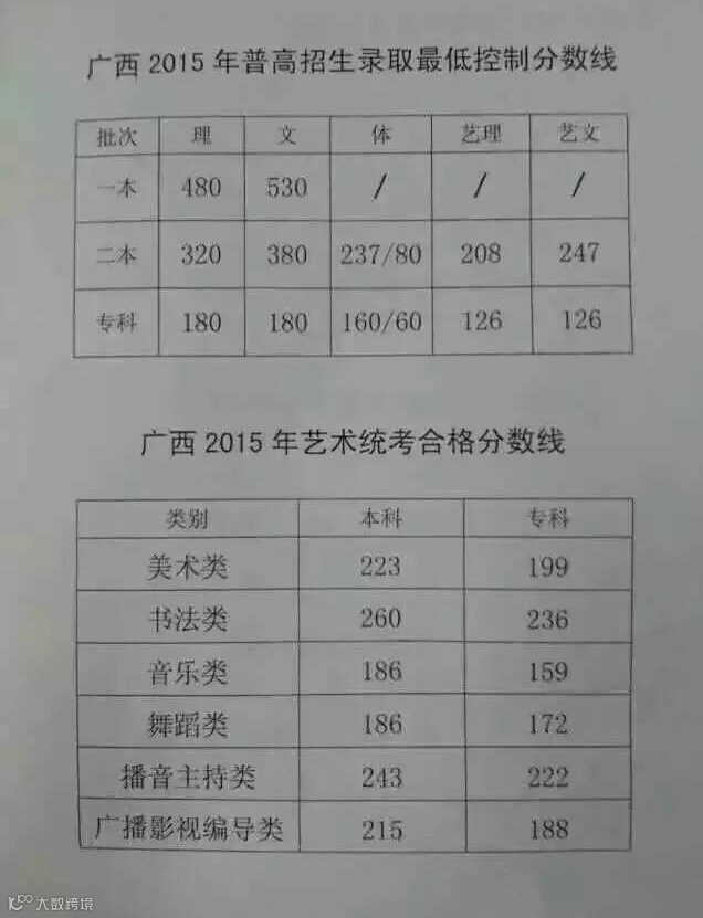 昨天上午,广西2015年普通高校招生录取最低控制分数线出炉了!