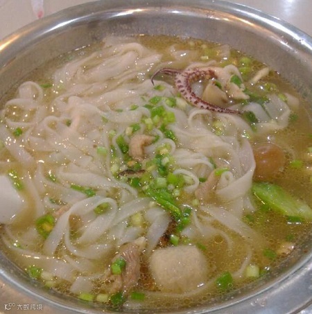 以海鲜类为主要配料,招牌的八仙米粉里面有鲜猪肉片、蚝豉、鱼丸、鹌鹑蛋、干虾仁、鲜鱿鱼、生菜等,这些新鲜食材和海鲜都令这碗粉鲜香无比。