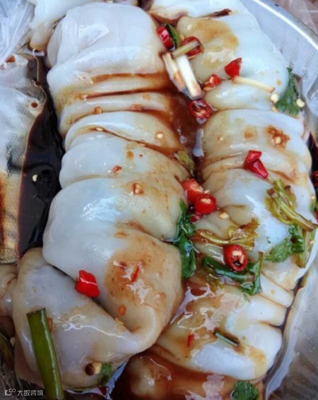 卷筒粉在广西各地的馅有差别,但做法大致相同,将刚刚蒸出锅的米粉配上不同的馅,卷成筒状。淋上酸甜的黄皮酱或番茄酱或咸辣的辣椒酱,爽口又香糯。
