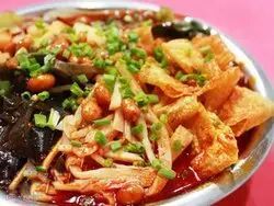 生的猪肉片、猪杂、牛肉等大火下锅现煮,配上酸菜、鲜香够味。
