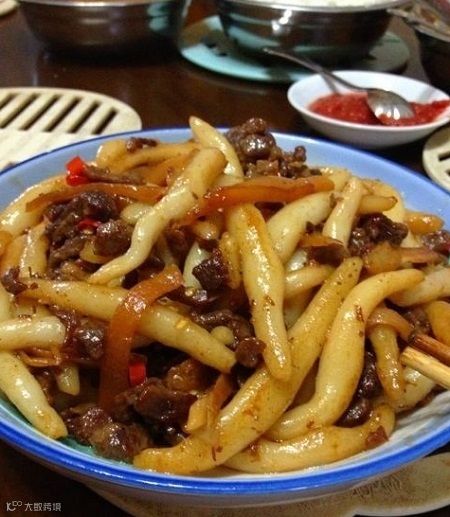 粉利是用上好大米细磨成浆,搓搜成小圆柱状,蒸至八成熟,取出晾干即成。粉利放在干净的水里泡,两天换一次水,可以保存1—2个月。可炒可煮。