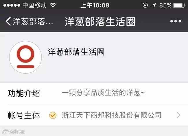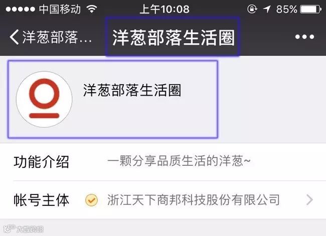 订阅号——头像白底红字,你的界面上方显示“洋葱部落生活圈”七个字