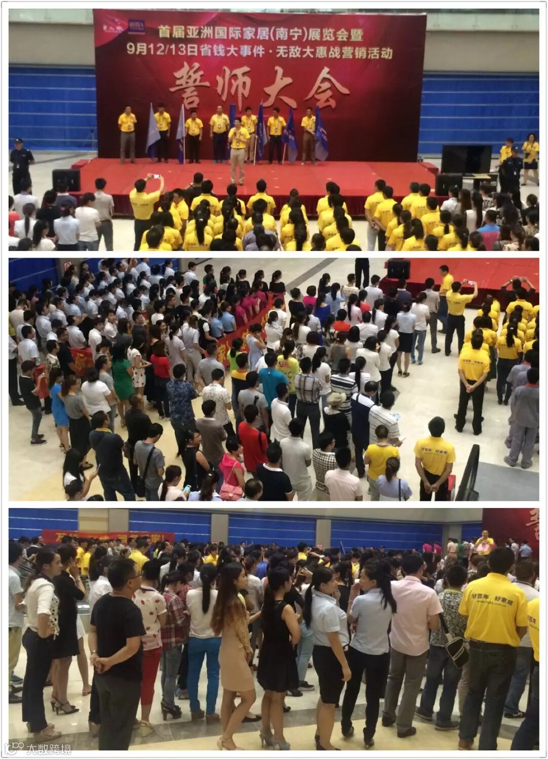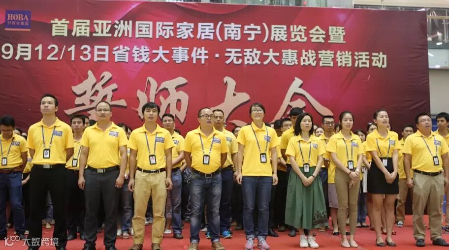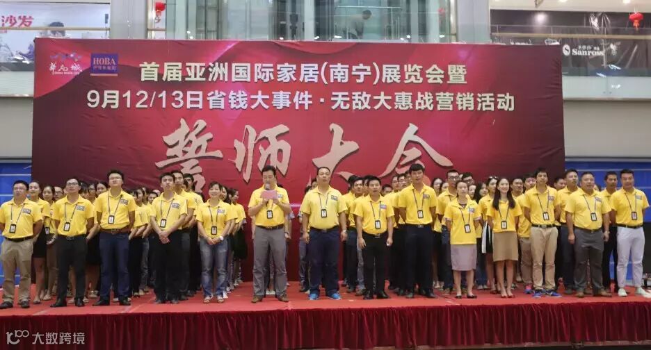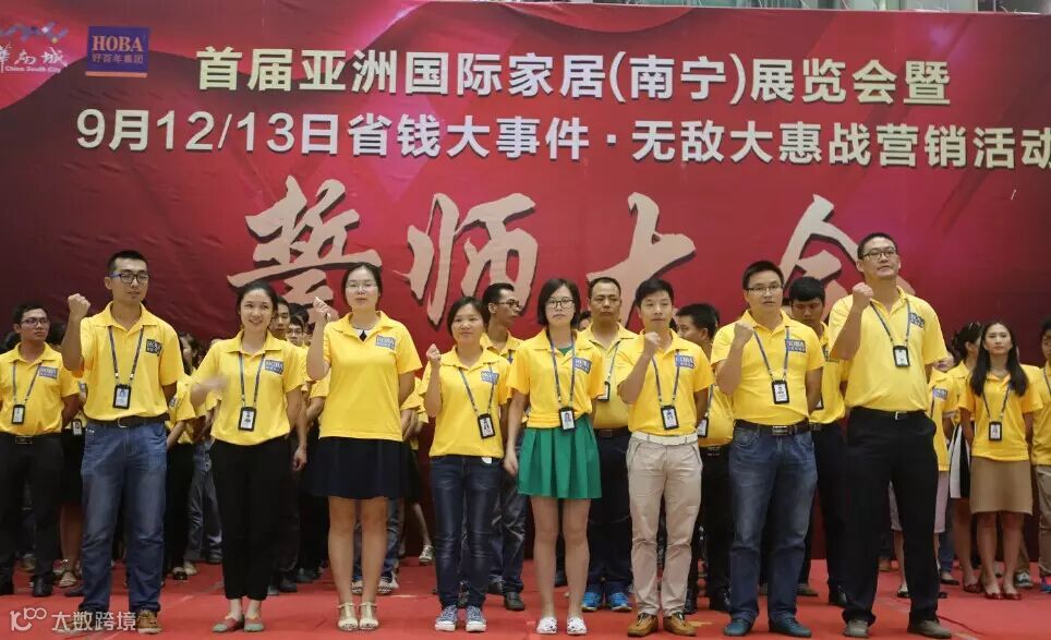 8月31日下午,南宁好百年“首届亚洲国际家居(南宁)展览会暨9月12/13日省钱大事件·无敌大惠战营销活动”誓师大会盛大举行,好百年家居全体战友与全体商户朋友们参与宣誓,嘹亮的誓言响彻整个好百年。