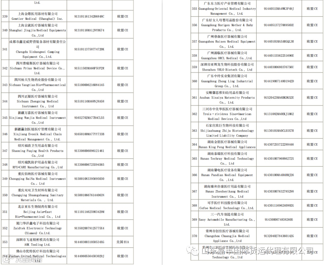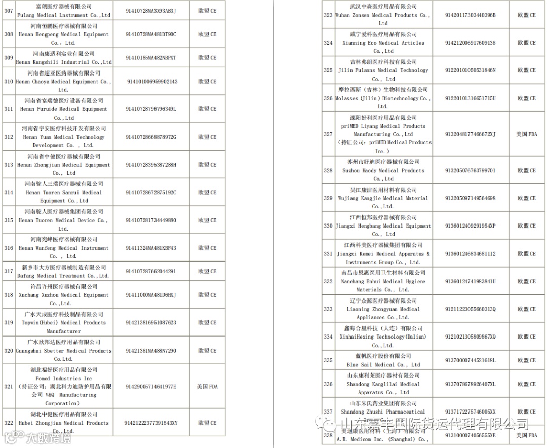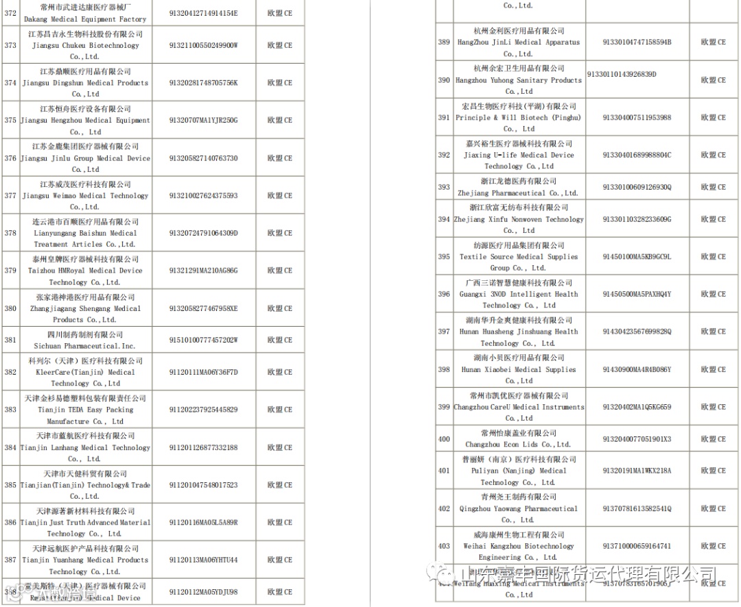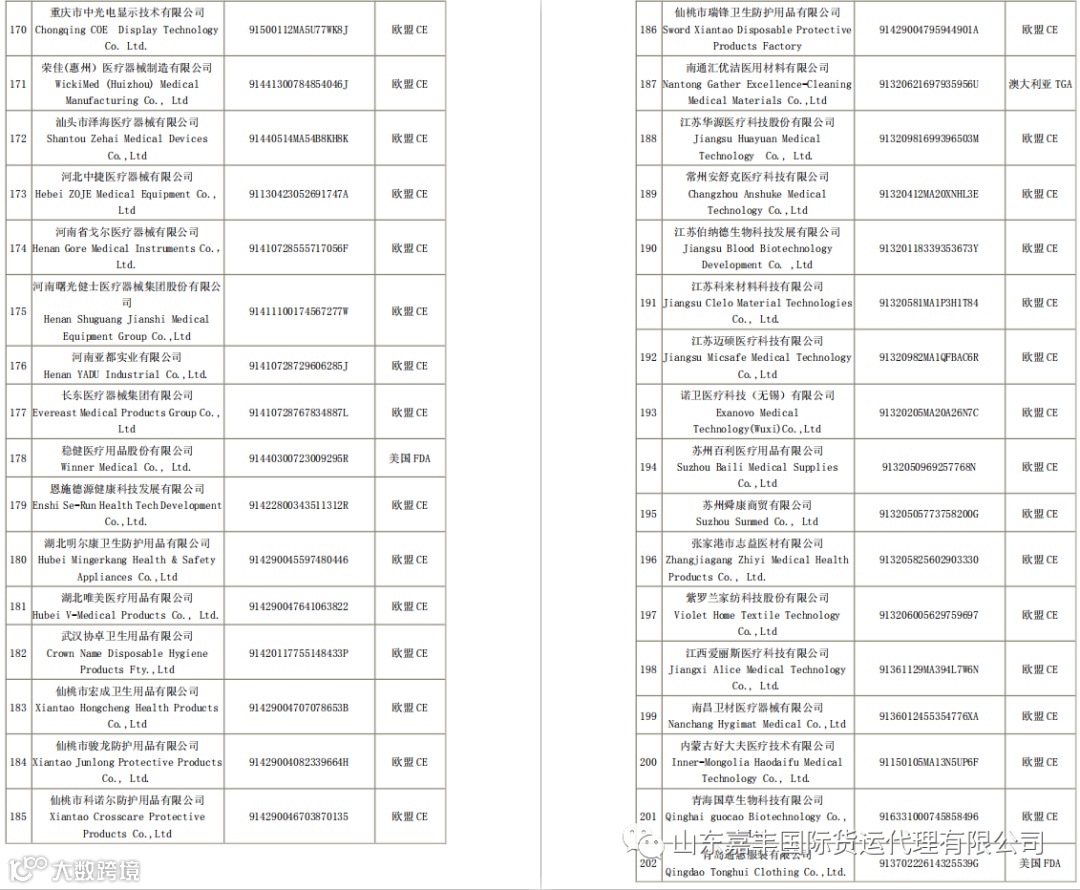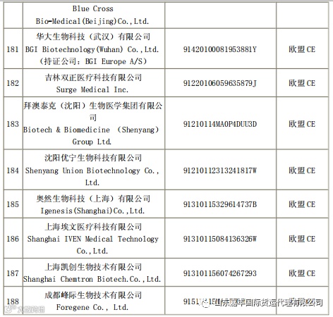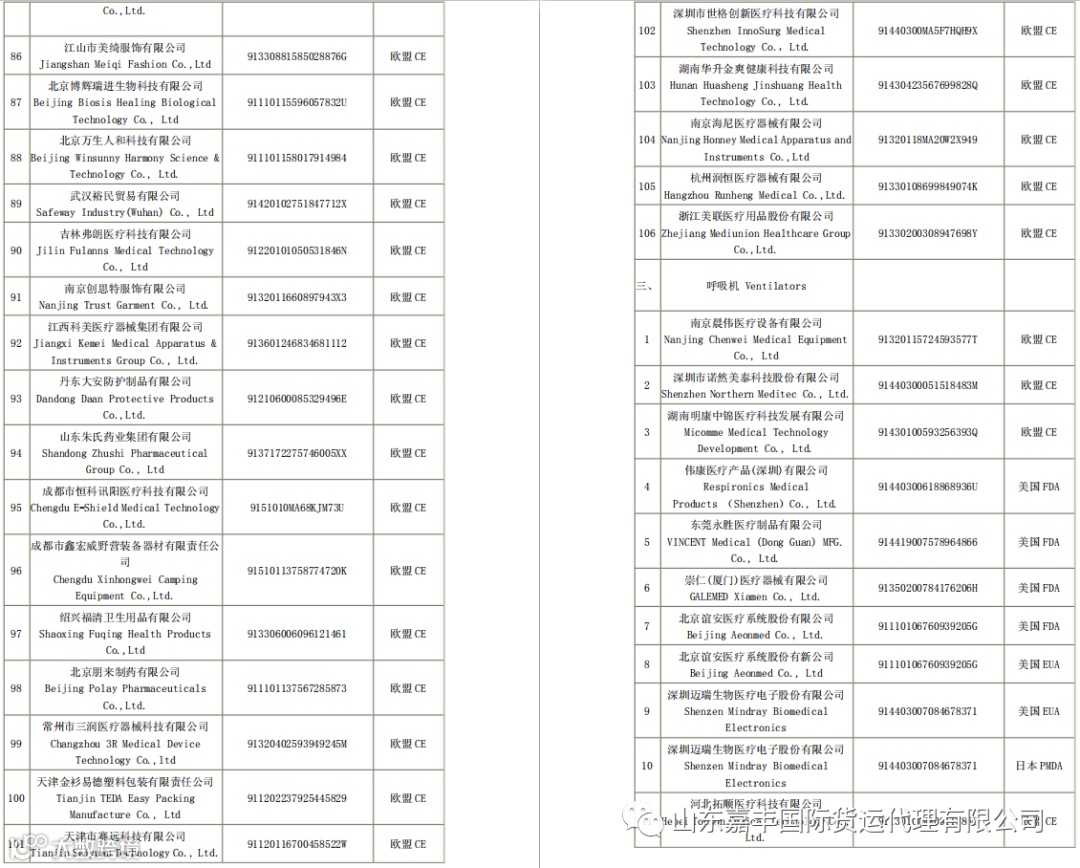 取得国外标准认证或注册的医疗物资生产企业清单