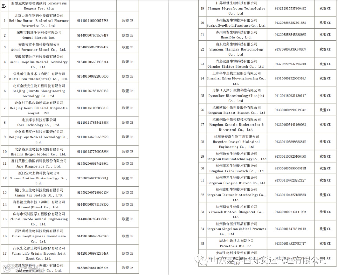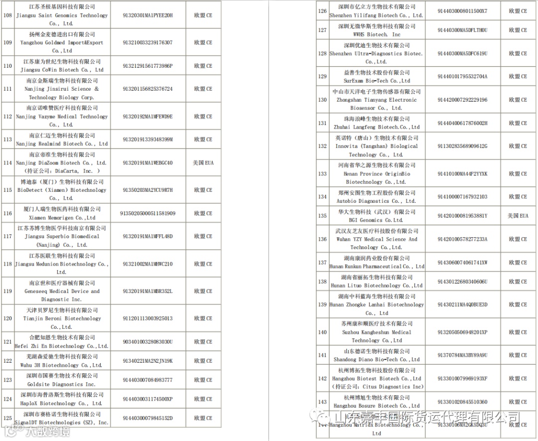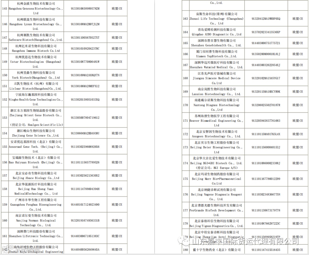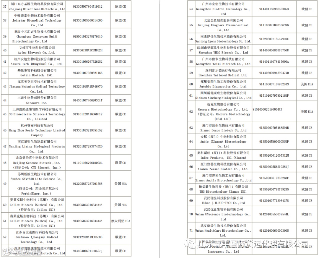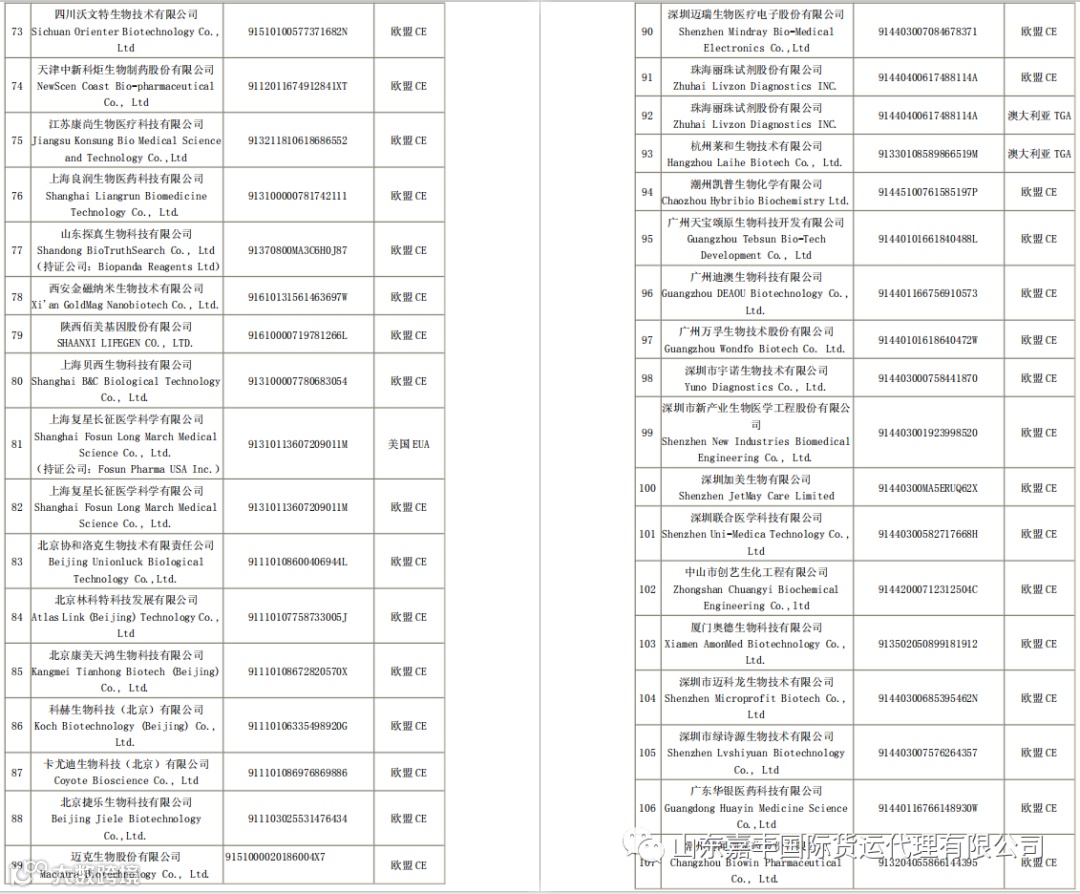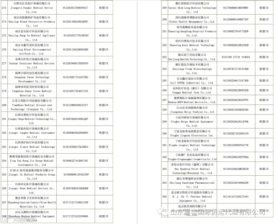 取得国外标准认证或注册的医疗物资生产企业清单