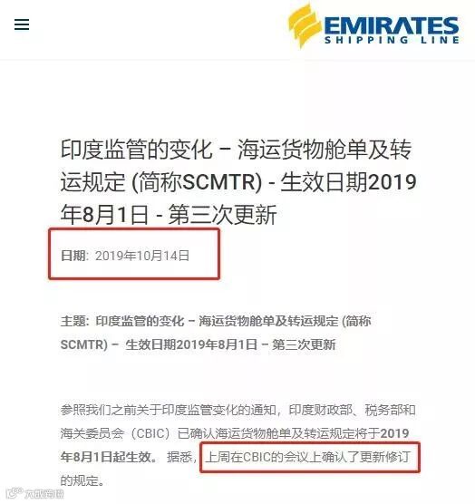 ★ 2019年11月1日起,CBIC和海关将只会接受海运货物舱单及转运规定(SCMTR) 新规定的舱单,绝无任何例外;