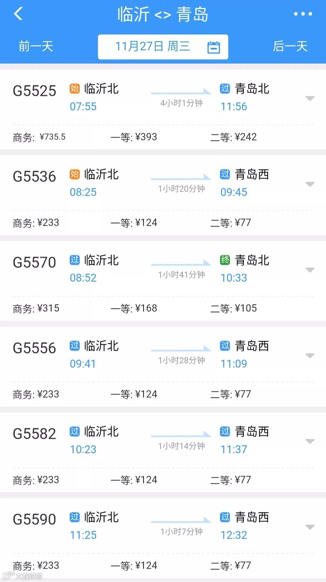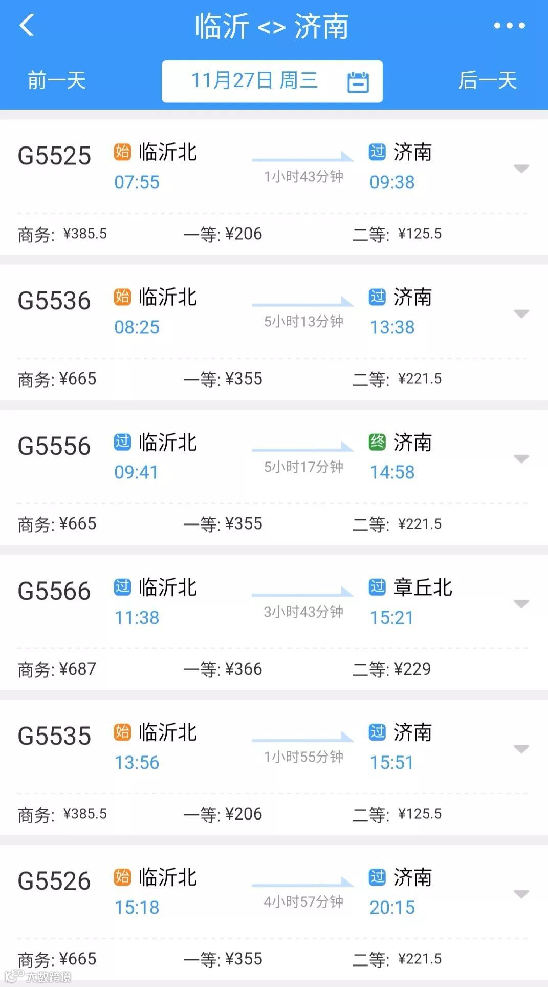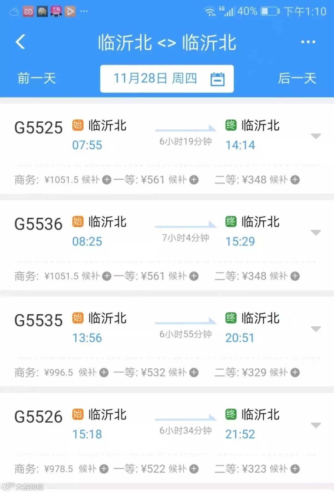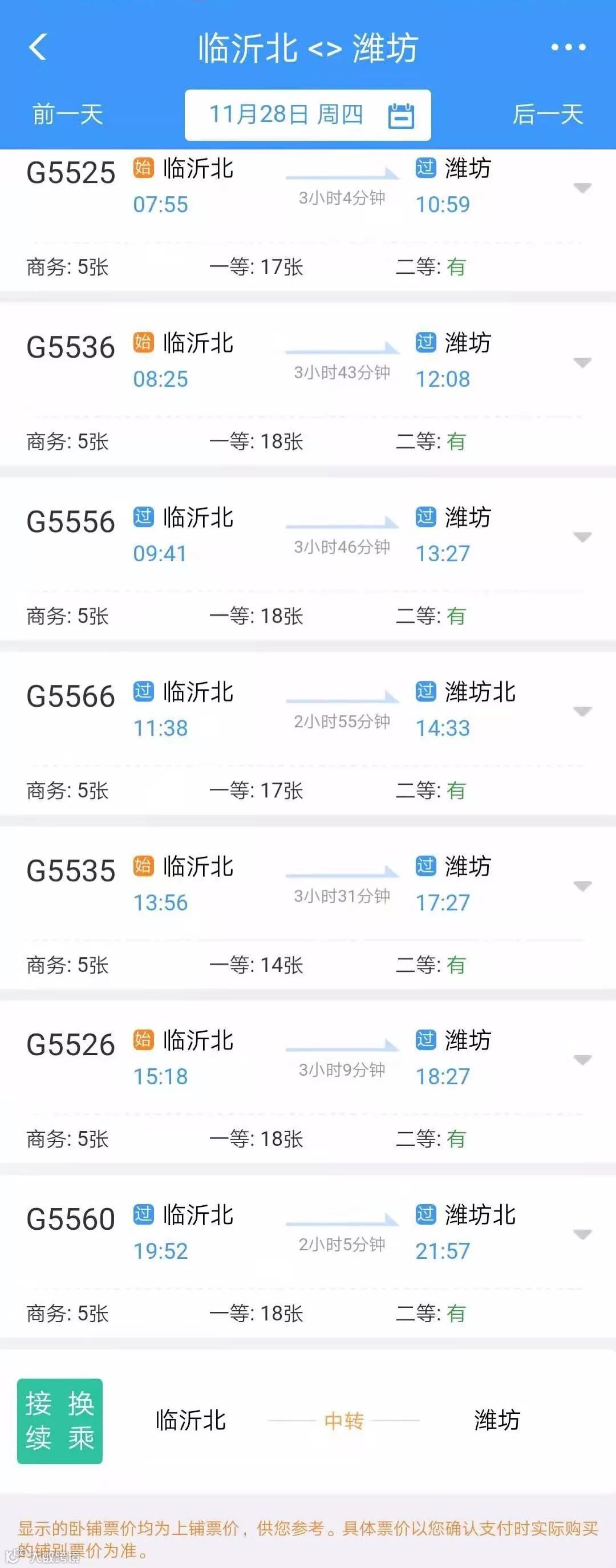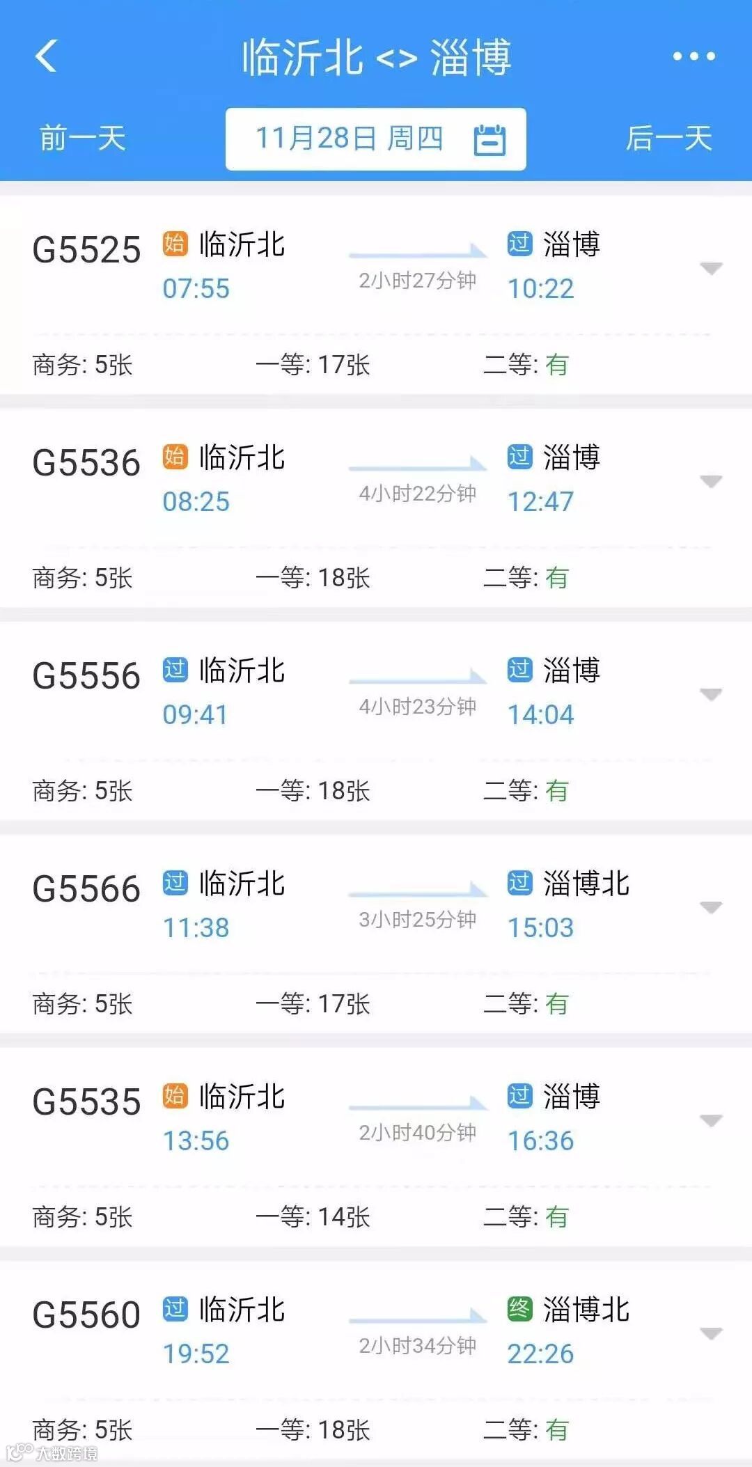 临沂北8:25分始发,沿途停靠日照西、青岛北、济南、曲阜东等11个车站,终到临沂北15:29分,全程运行7小时04分。