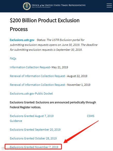 为保证准确性和权威性,我们在USTR的官网上进行查询。美国贸易代表办公室官网:
