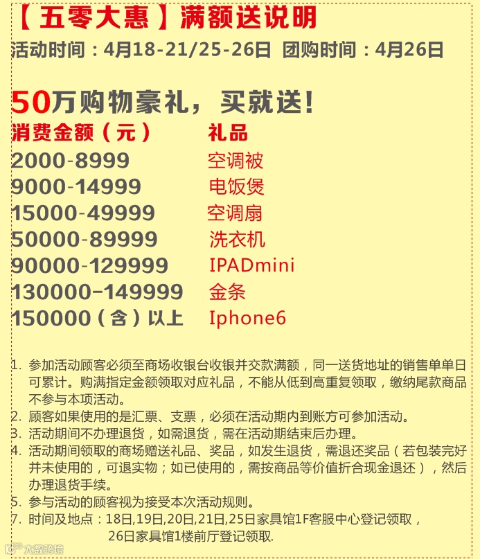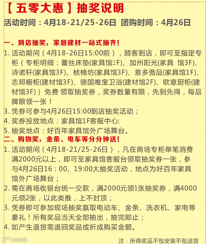 如果你以为惊喜就这么一点那就大错特错了!4月18日-21日/25日-26日,华南城南宁好百年将举行“五零大惠”活动,在此期间,活动内容丰富多彩,好百年期待您的到来!以下是“五零大惠”各项活动说明。