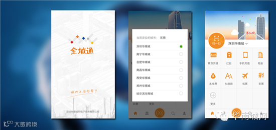 华南城网全城通是基于LBS技术,以O2O交易闭环为切入点,融合了线下支付、线上交易、团购特惠、生活缴费服务、活动促销展示等功能的一款生活服务类手机应用。预计将在2015年4月上线,定位于华南城生活服务应用,力图打造城内生活好帮手。