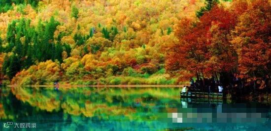 湖水的颜色来源于湖边风景的倒影,还有湖底的藻类和钙化的岩石。秋季是游览九寨沟的最佳时间,此时,湖面颜色纷繁绚丽,堪与画家色彩丰富的调色板相媲美。