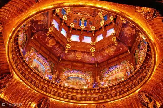 中国的建筑一直深受风水和佛教思想的影响,在梵宫更是表现的淋漓尽致。因为梵宫可是占据着最好的风水:它位于小灵山脚下,太湖之滨,侧畔还有高达88米的灵山大佛。梵宫是专为2009年第二届世界佛教论坛而建造的,宫内到处流光溢彩,金碧辉煌。