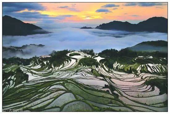 “云和”的字面意思是“祥和的云朵”。1000多年来,云和以及周边的梯田已经成为当地农民们赖以生存的家园。层层迷宫似的梯田在海拔2001400米不等的山峦里蜿蜒盘旋,最多可叠700层。阴雨天气最适于梯田观光,此时河水蒸发的雾气,笼罩在梯田上方,随风轻轻浮动,形成海市蜃楼般的农田美景。