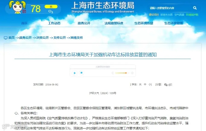 近日,上海市生态环境局发布《关于加强机动车达标排放监管的通知》,要求进一步加强机动车达标排放监管工作,将国四以及未安装远程在线监控系统的国五排放标准营运重型柴油车辆等作为重点监管对象。各区生态环境部门将以集中停放地周边道路为重点开展联合检查,每月至少开展一次路查路检工作,各区全年至少完成1000辆次机动车拦截检测,严格查验车辆污染物控制装置、车载诊断系统(OBD)运行情况、车用尿素使用情况,严厉打击排放不达标车辆上路行驶、高排放车辆违反限行规定等违法行为。