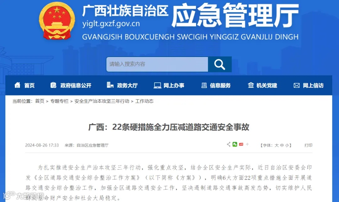 近日,广西自治区安委会印发《全区道路交通安全综合整治工作方案》,要求全区即日起至2025年2月底开展为期6个月的道路交通安全综合整治。其中要求深化北斗定位技术在重点营运车辆动态监控中的应用,全面推进在重型货车和牵引车等营运车辆上安装智能视频监控报警装置。