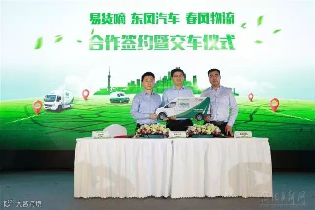 现场,就有这么一家走在前面的物流公司——春风物流,一次性购入20辆新能源车作为车队使用,投入城市物流配送运营。易货嘀系统也将首次应用于新能源车队,通过对车辆进行远程遥控、远程限速和能耗管理,助力春风物流打造优质城市运力。东风汽车股份有限公司副总经理李争荣、易货嘀CEO秦愉、春风物流总经理耿庆松现场签署了城市配送业务合作框架协议,三者的合作预示着互联网+新能源带来的城市物流配送变革迈出了具有实质性意义的一步。