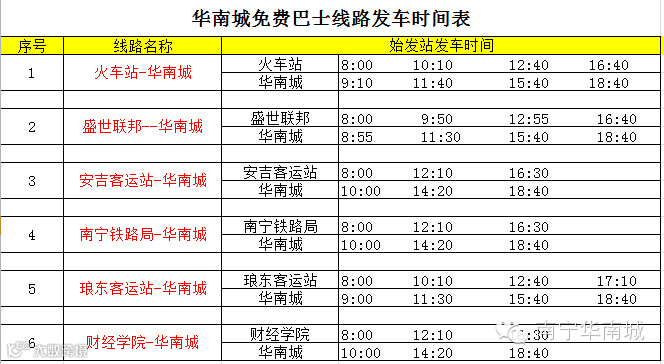 1、公交线路39路区间车、61路、64路、78路、W1路、100路和环城2线可直达南宁华南城;