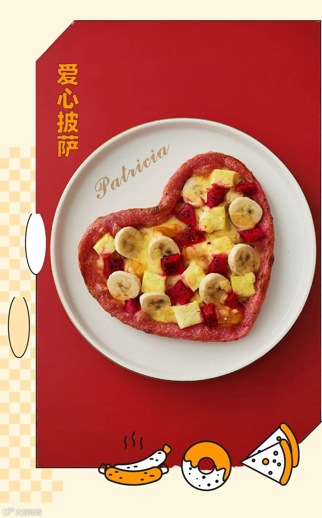 心形的披萨,看着就让人少女心爆棚,香甜多汁的水果粒让浓厚的芝士增添了一抹水润,吃起来完全不觉得干燥!
