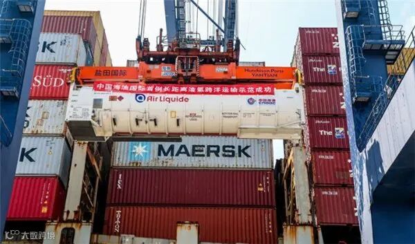 本次示范项目是中国海油与法国液化空气集团开展的产业技术与资源合作,液氢装载在保冷的罐式集装箱内,通过欧洲远洋货轮进行运输,于当地时间9月4日从欧洲鹿特丹港装船,经由大西洋(3.970, -0.02, -0.50%)至好望角再到马六甲海峡,最终抵达深圳盐田港,完成首船吨级以上液态氢长距离跨洋运输。