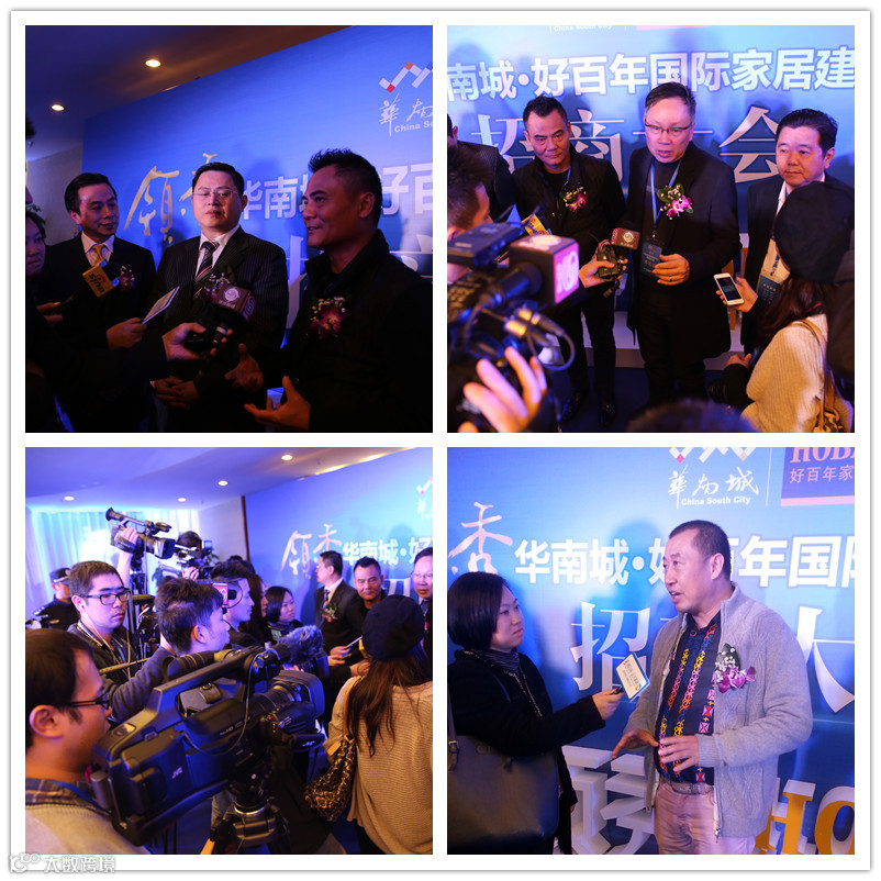 全国工商联家具装饰商会执行会长兼秘书长张传喜先生、香港家私协会名誉主席张呈峰先生、深圳市家具行业协会执行会长尤国忠先生、东莞大岭山家具协会会长陈爱民先生、广东省家具商会会长熊建涛先生与好百年集团总裁韩茂胜先生在招商大会结束后共同接受了各大媒体的采访,并就目前家居行业发展进程中所面临的机遇与挑战、家居商场的未来发展方向、各类商超呈现“购物中心化”发展趋势的意义、泛家居的实质、好百年国际家居建材博览中心“区域总部基地”、“品牌旗舰集群”、“品牌直销中心”核心定位的重大意义等问题做出了相应解答。