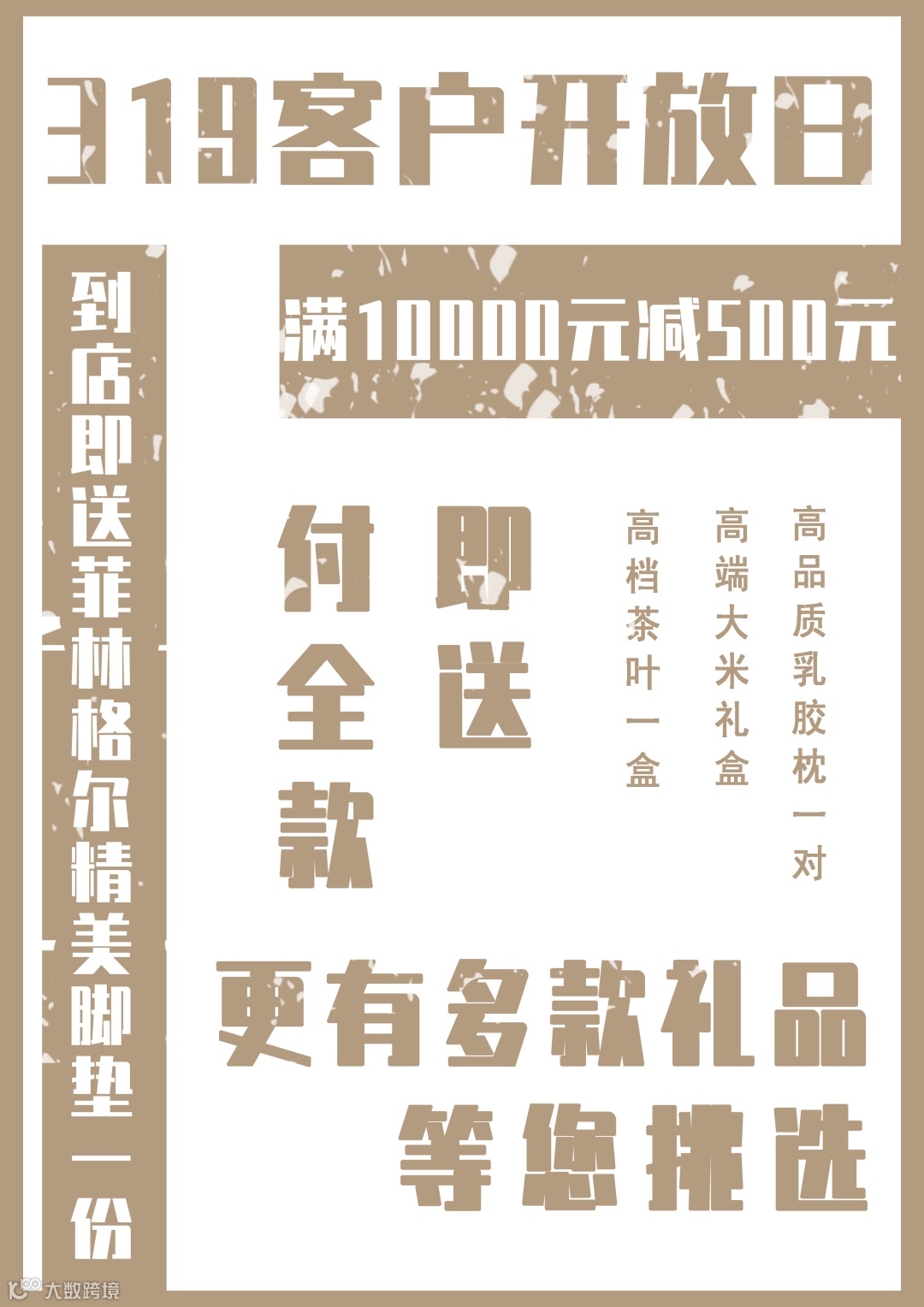 3、付全款即送高档茶叶一盒、高端大米礼盒、高品质乳胶枕一对等,更有多款礼品等您挑选;