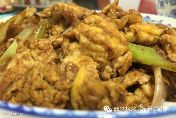 4:能感觉到葱微微香了下炒好的鸡蛋,翻炒几下,让鸡蛋挂匀酱,盛盘开造!