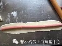 13:剩下的面片擀成长条,把香肠包进去,卷起来